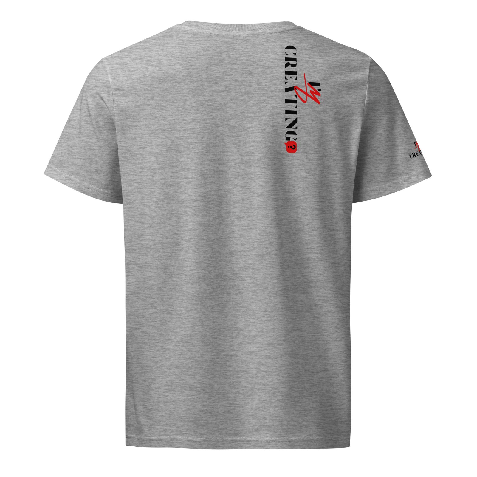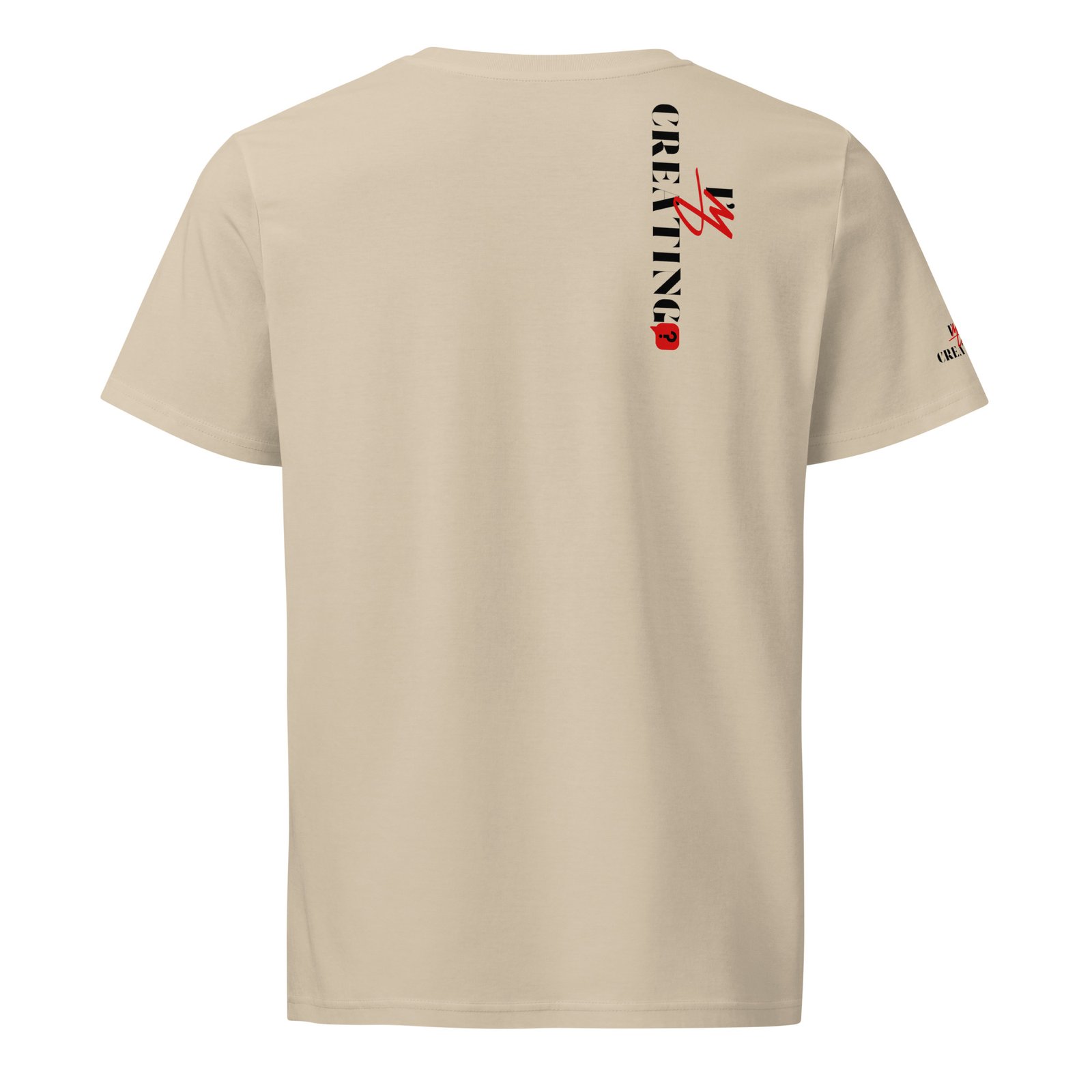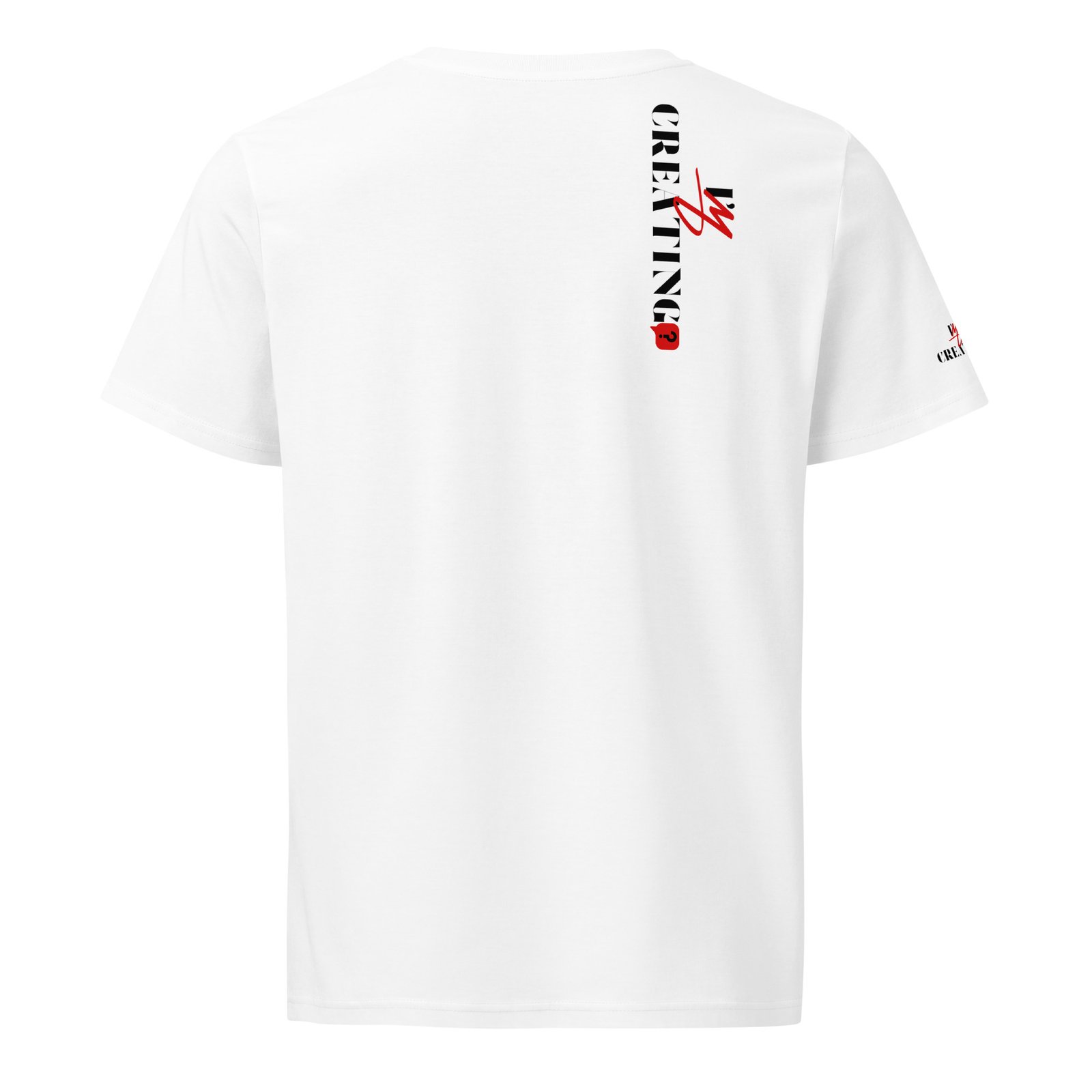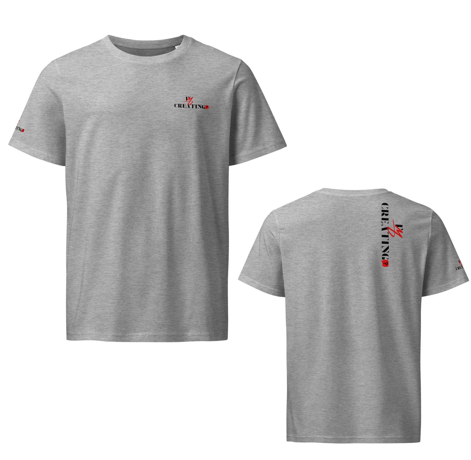 t-shirt with the text "I’m Creating?" printed on the front and vertically on the backMinimalist Statement Tee – “CREATING?” Edition