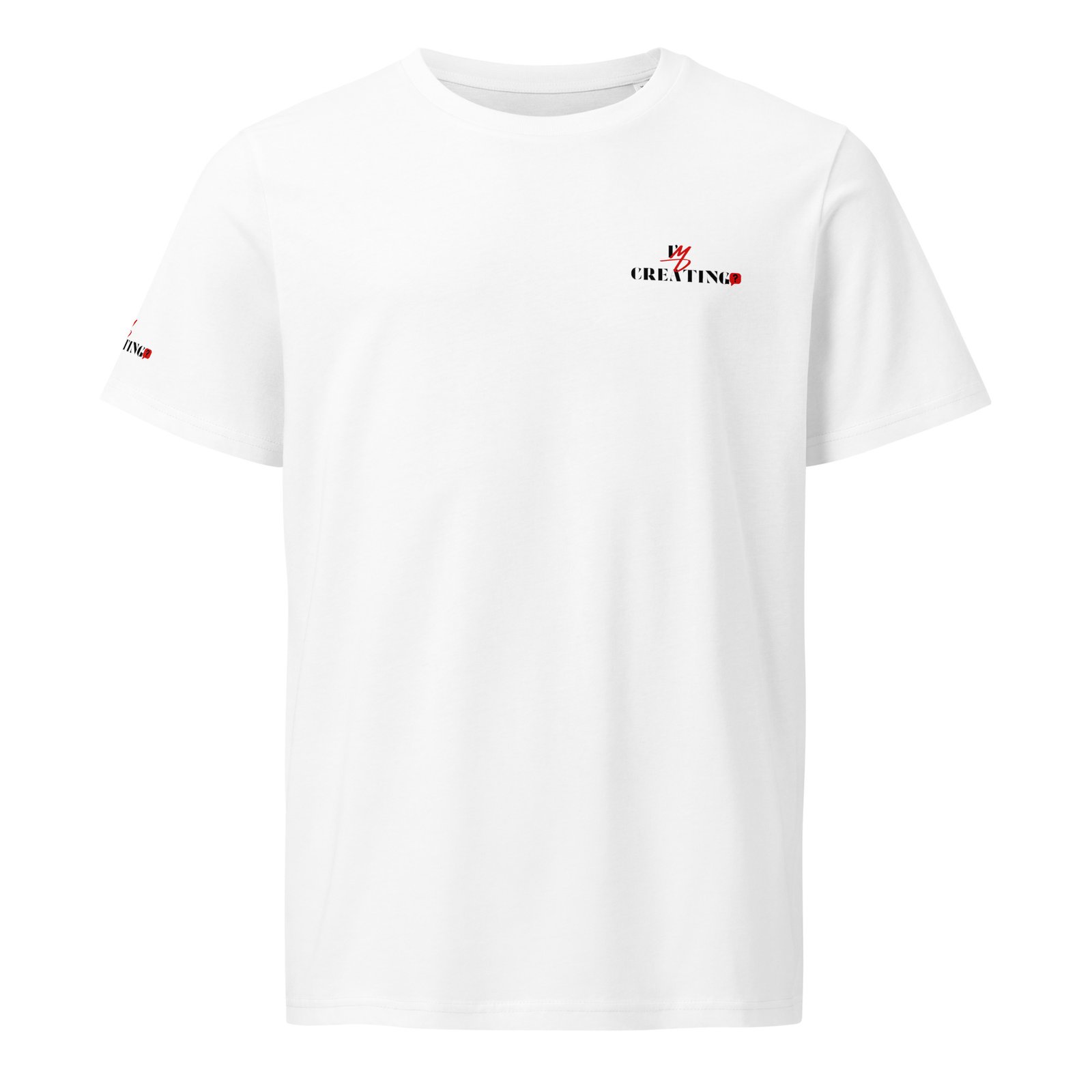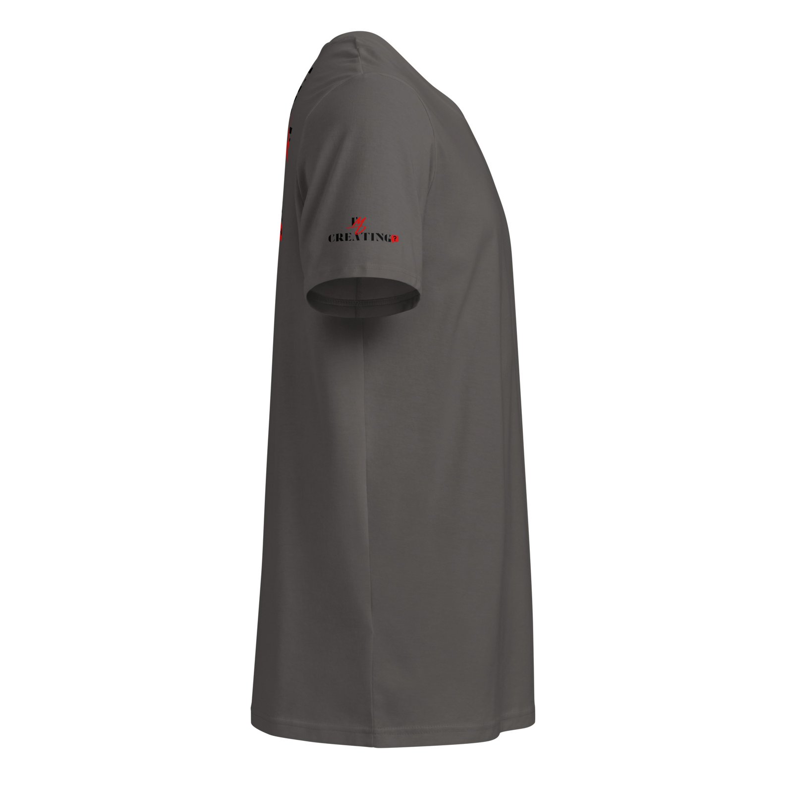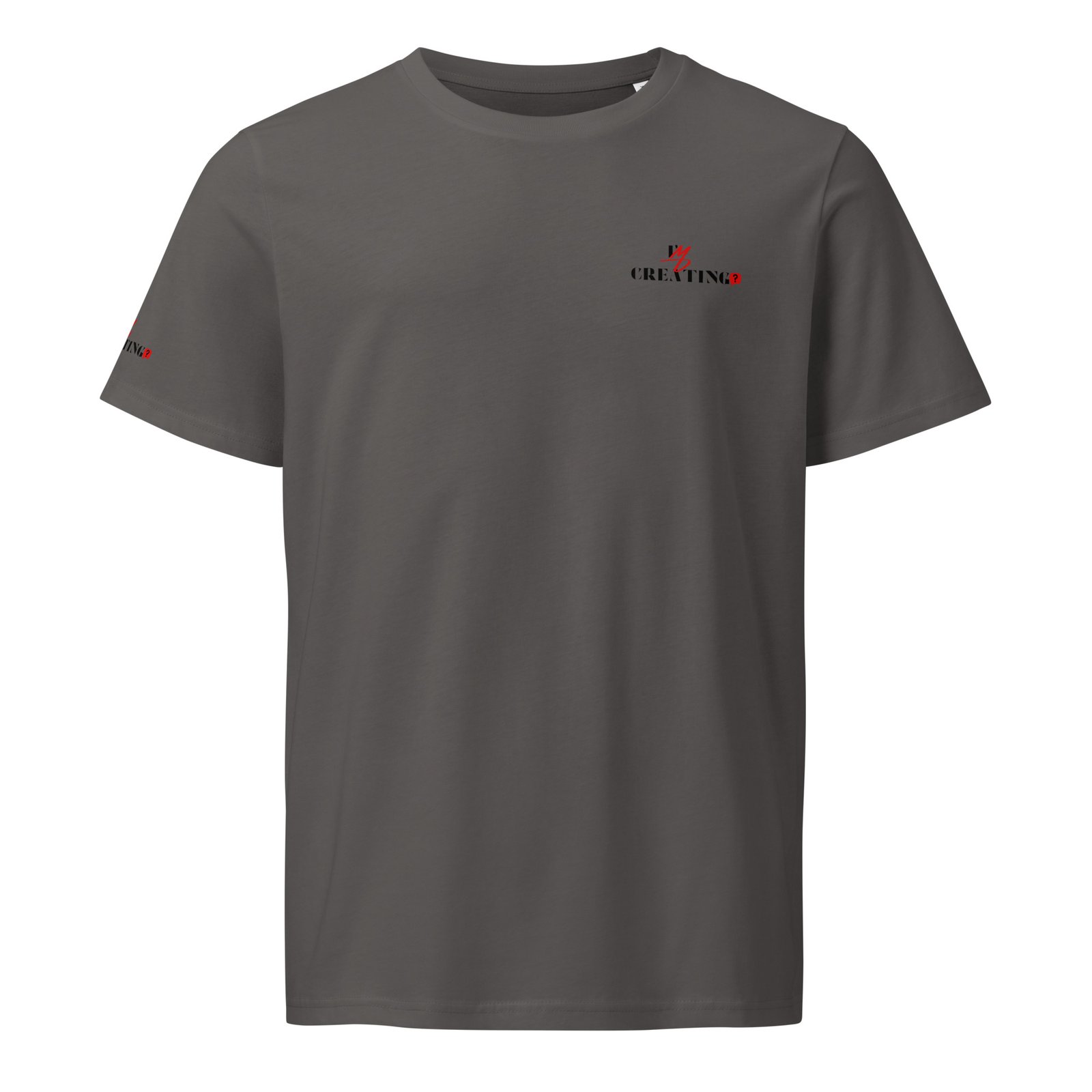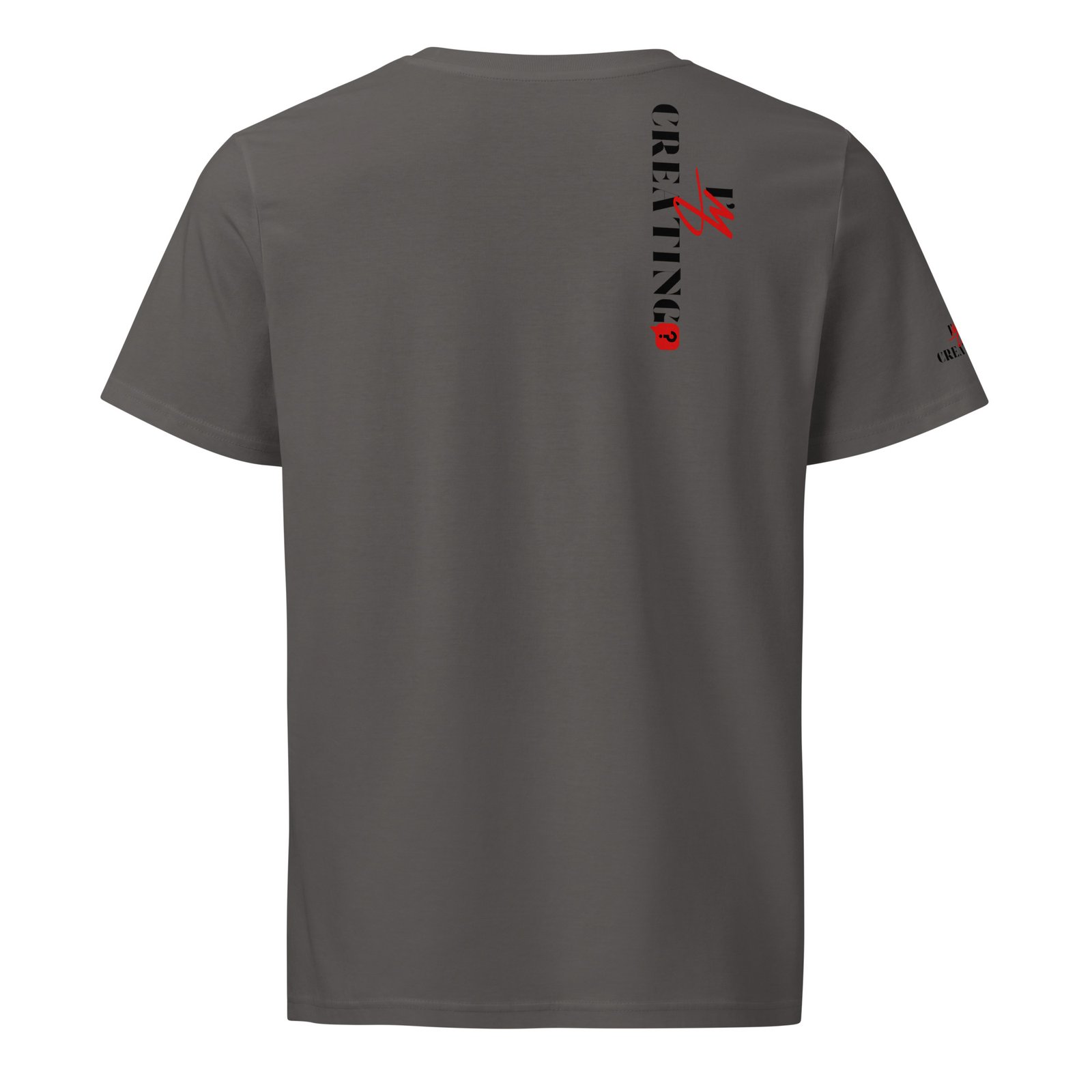 t-shirt with the text "I’m Creating?" printed on the front and vertically on the backMinimalist Statement Tee – “CREATING?” Edition